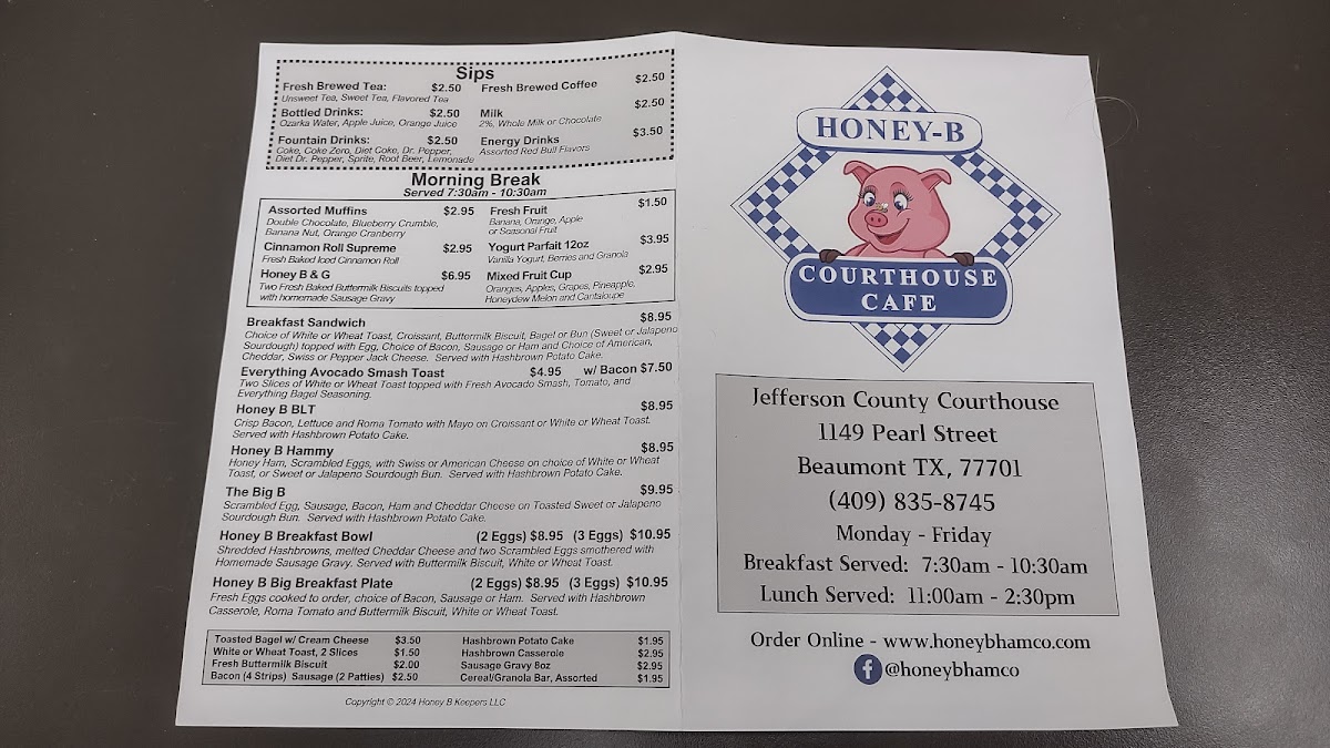 The Honey-B Courthouse Cafe Menu offers a delightful mix of homey comfort and bold flavors, perfect for anyone craving a satisfying meal in a warm, inviting atmosphere. Located at 1149 Pearl St, Beaumont, TX, this charming spot has become a local favorite, and it's easy to see why. From classic breakfast options that will kickstart your day to hearty lunch dishes, there's something to please every palate.
